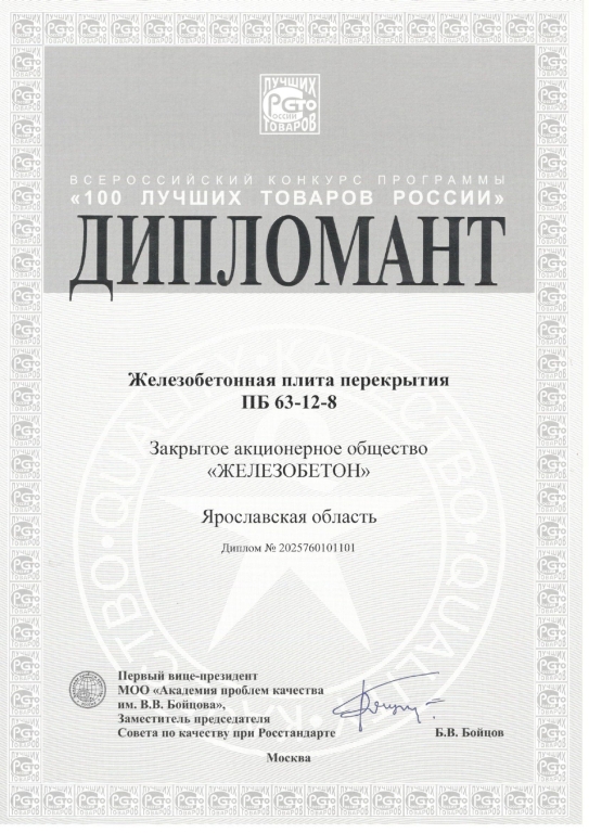 АО «Железобетон» имеет зарегистрированный товарный знак. Разработана и утверждена «Политика в области качества». Штат ИТР укомплектован специалистами высокого уровня. Предприятие является постоянным участником и неоднократным победителем областного «Конкурса на лучшие работы в области качества».